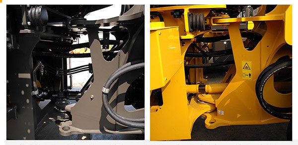 同样,由于隧道施工环境较封闭,一般比漏天工况条件要恶劣,所以对设备的耐久度也是不小的考验。针对隧道重载特殊工况,L956H侧卸装载机采用了全新结构侧卸机具,动臂更厚,前后车架也采用了volvo箱式结构车架,轴距对中布置、宽铰接设计、传动轴中置,使得整车结构受力均匀,承重能力更强,寿命更是超万小时,整机可靠性得到进一步提升。