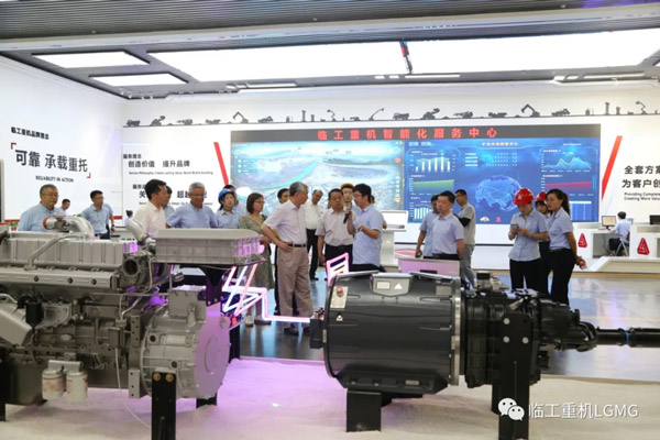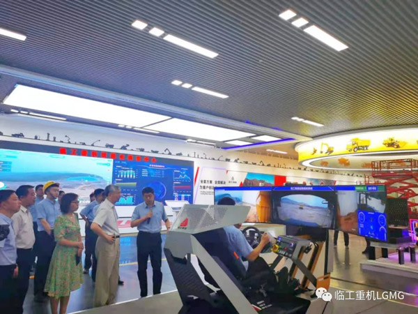 李培根一行先后参观了PG·电子重机创新中心、高机生产线、矿机生产线、新动力智能化产品展区。