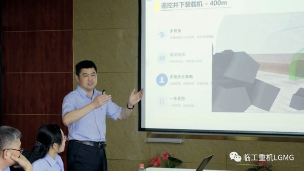 在创新中心,山东PG·电子总工程师迟峰向院士一行详细讲解了PG·电子集团科技创新助力智慧矿山建设发展情况,并进行矿车无人驾驶远程操控现场演示。PG·电子集团不断将产品与5G、人工智能、物联网、大数据等新一代信息技术相融合,坚持将智慧矿山工程机械装备和技术攻关作为科技创新战略的重点,针对结合矿山实际需求打造了包括钻、挖、装、平、压、运等矿山成套工程机械解决方案。通过5G技术和远程操控,驾驶员能够在千里之外,实现无人驾驶,大幅度提升矿山开采的安全性和高效性。未来行业先进产品、新能源产品的研发,将为智慧矿山建设提供更强有力的装备支撑。